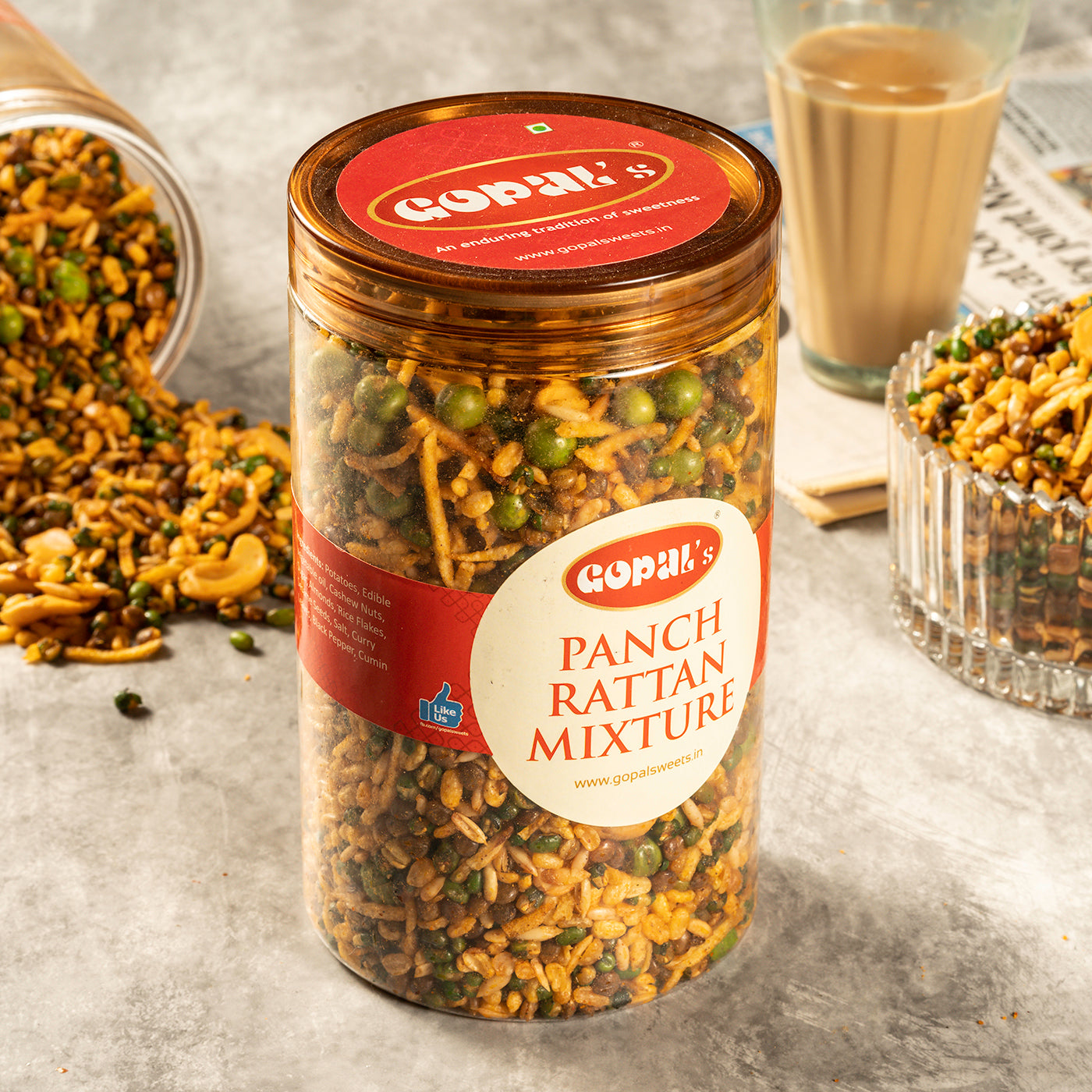 Dive into the rich and savory delight of Gopal's Panch Rattan Mix Namkeen, a traditional Indian snack blend that offers a unique and satisfying taste experience. Our Panch Rattan Mix is crafted from an exquisite combination of gram flour, puffed rice, green peas, peanuts, and a medley of spices. Each ingredient is carefully selected to create a snack that is crispy, flavorful, and absolutely irresistible. Perfect for tea-time, gatherings, or whenever you crave a savory treat, this mix brings together the best of Indian flavors in one delightful bite.