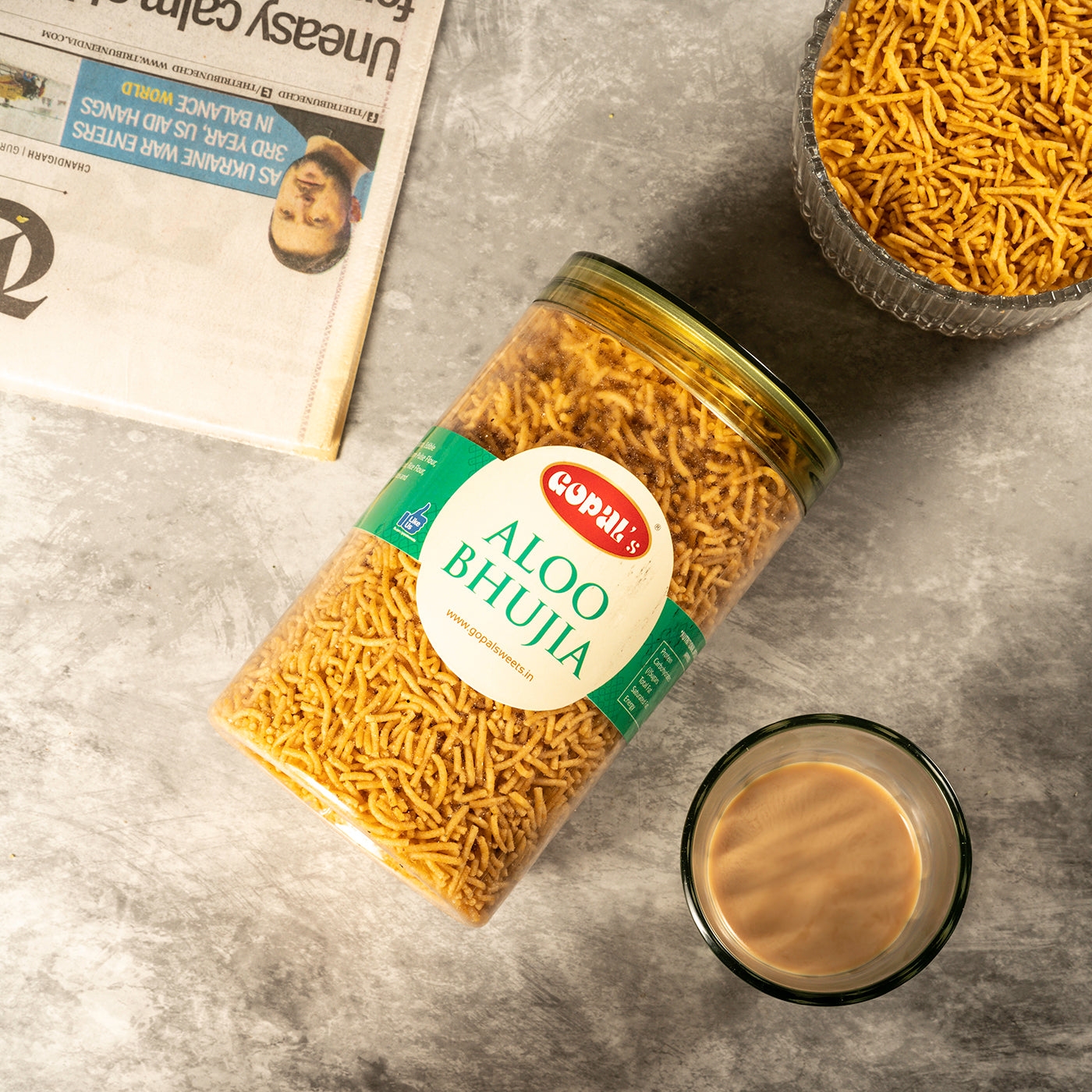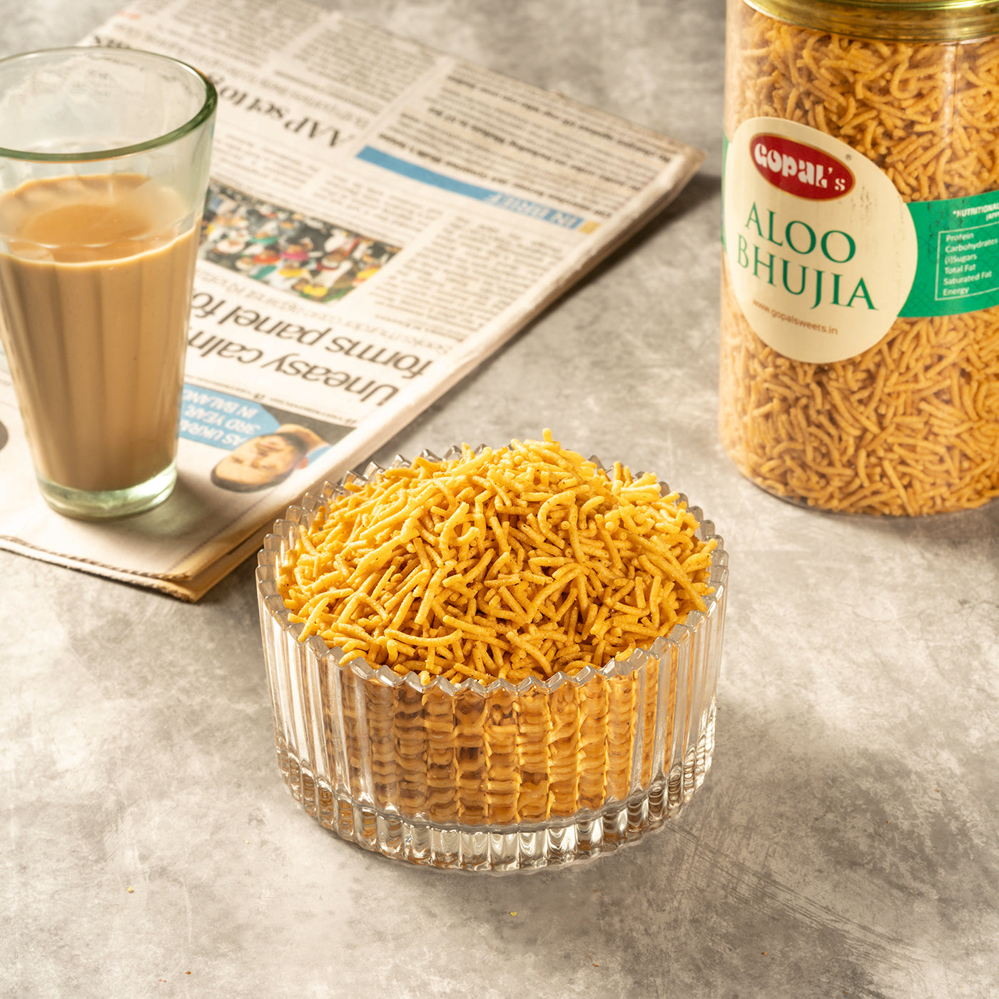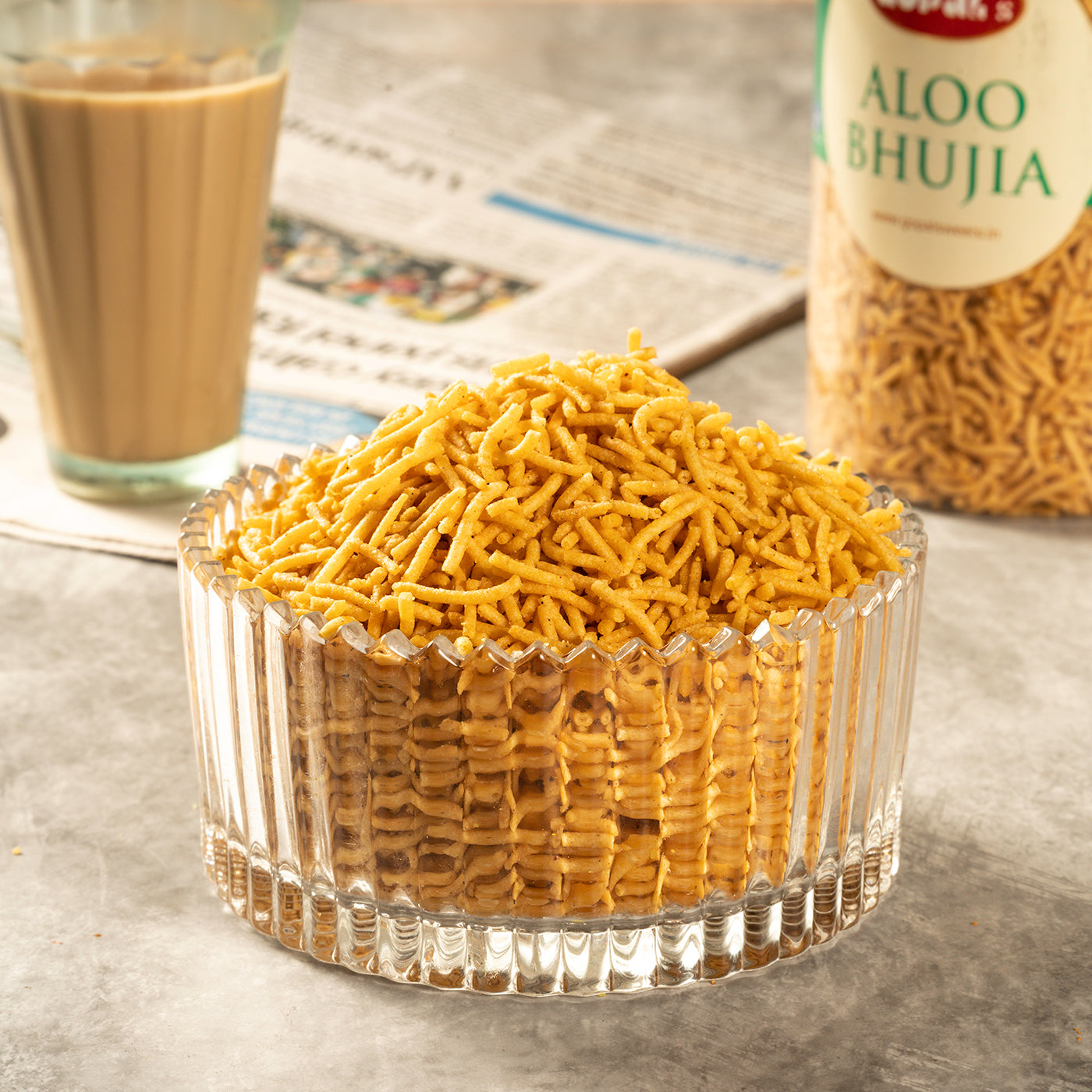 Relish the crispy and spicy delight of Gopal's Aloo Bhujia, a beloved Indian snack made from premium potatoes and a blend of authentic spices. Our Aloo Bhujia is perfectly fried to achieve a golden, crunchy texture, making it an irresistible treat for any time of the day. Whether you're enjoying it with tea, adding a crunchy twist to your meals, or serving it at gatherings, Gopal's Aloo Bhujia delivers a burst of flavor in every bite.