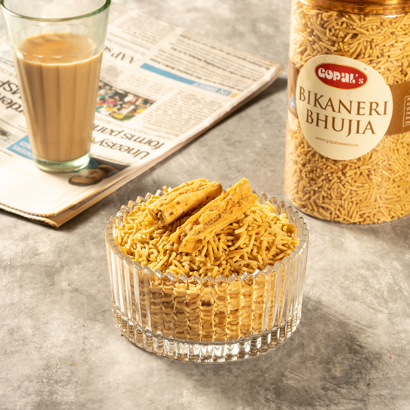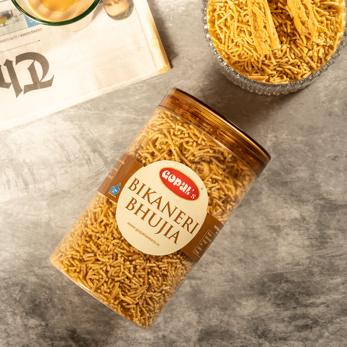 Savor the authentic taste of Gopal's Bikaneri Bhujia, a classic Indian snack that combines the perfect blend of spices and crunch. Made from premium gram flour and a mix of traditional spices, our Bikaneri Bhujia is a deliciously crispy and flavorful snack that's perfect for any occasion. Whether you're enjoying it with tea, serving it at gatherings, or simply indulging in a tasty treat, Gopal's Bikaneri Bhujia offers a delightful taste of Indian tradition in every bite.